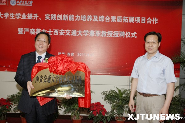 西安交大聘任严晓燕行长兼职教授,卢天健副校长为其颁发聘书。她表示,中国的经济发展、科技进步将北京银行与西安交大联系到一起,北京银行非常支持和赞赏西安交大双院制育人模式的改革创新,今后自己将多与交大学子分享金融业发展现状和问题、青年人成长成才等问题的感悟,多为教育事业做贡献。