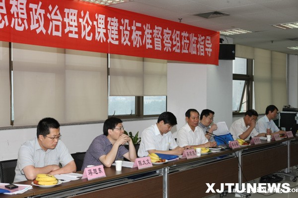 督查组成员包括:广东省教育厅正厅级巡视员李小鲁,湖南省教育工委委员夏智伦,郑州大学党委副书记、全国思想课教学指导委员会专家吴宏亮,上海理工大学宣传部长、全国思想课教学指导委员会专家陈大文,教育部社科司蒋旭东。陕西省教育厅副巡视员张长保,宣教处副处长柯昌万陪同督查组一行。李伟副书记、程光旭副校长、宫辉校长助理及学校马克思主义学院、人文学院、党校办、宣传部、团委、科研院、财务处、人力资源部、教务处、研究生院等相关单位负责人参加汇报会及反馈意见会。