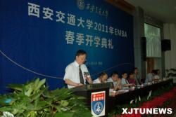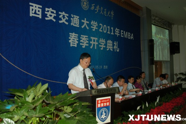 典礼在庄严的国歌声中拉开帷幕。研究生院陈天宁院长代表学校向EMBA新学员表示热烈欢迎和衷心的祝贺,他介绍了西安交大EMBA的成长历程、发展特点及所取得的成果。他说,EMBA教育具有很强的实践性和创新性,希望同学们既要注重理论学习,更要注重结合自己所处部门的实践探索;既要学习国际先进的管理理论,更要结合中国的国情和实际,积极探索、实践和创新。孙卫副书记在讲话中对EMBA新学员提出了殷切希望,希望新学员们以良好的心态、正确的态度珍惜学习机会,为成为一名优秀的交大EMBA学员而努力。