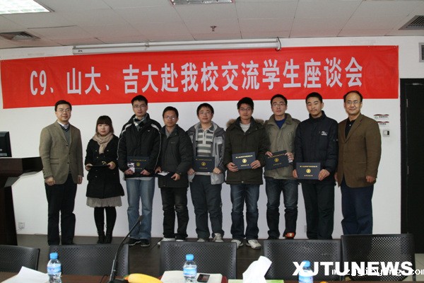 本学期考试结束后,将有7名C9高校来我校交流的学生离开我校返回其母校。刘进军处长和赵升吨副院长为这7位学生颁发了“第二校园学习经历证书”和纪念品并与学生合影留念。
