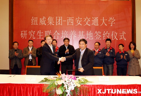 3月24日下午,我校与中新苏州工业园区开发集团股份有限公司、纽威数控装备(苏州)有限公司联合共建研究生培养基地签约仪式在苏州独墅湖国际会议中心举行。党委书记王建华、我校校友中新集团董事长杜建华等领导及40多位校友和企业代表出席签约仪式。副校长程光旭代表西交大与我校校友中新集团总裁赵志松、纽威集团董事长王保庆签订协议书。签约仪式由西安交大苏州研究院常务副院长吴军华主持。
