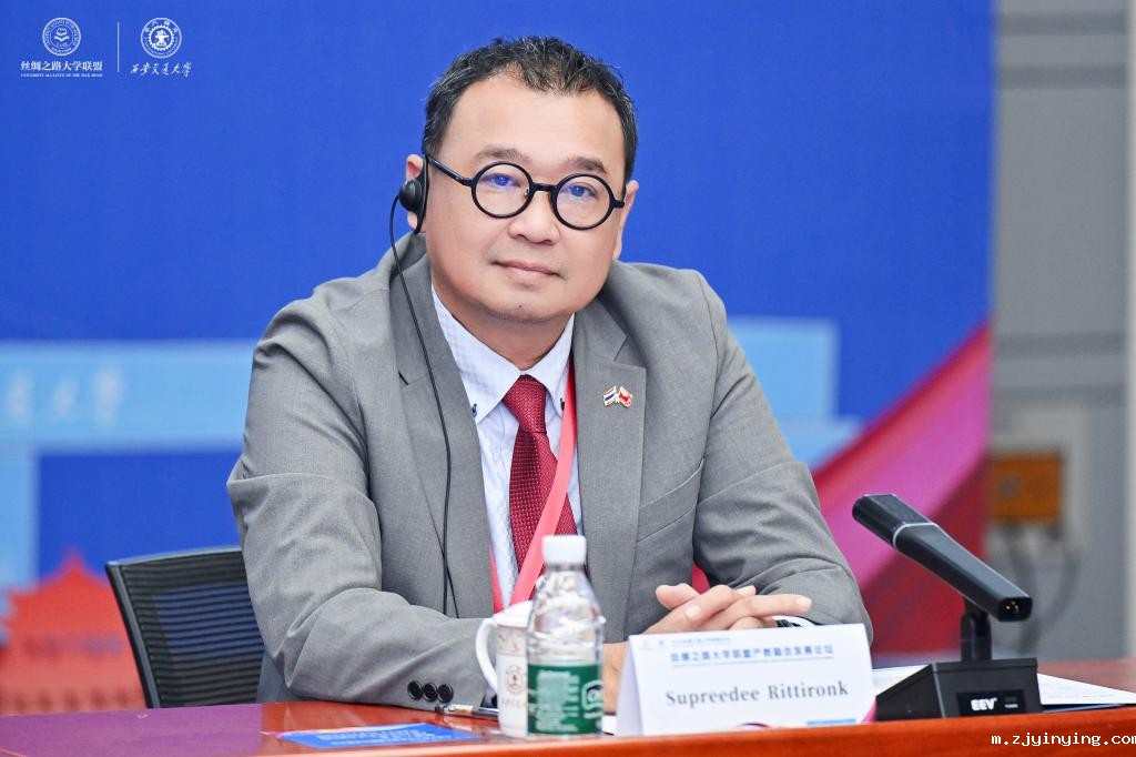 泰国国立政法大学副校长素普里迪・里蒂龙分享了该校在贯通制培养,“学徒”制度方面的经验,表示产教融合必然是高等教育未来国际合作的重要方向之一。