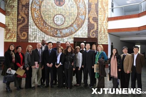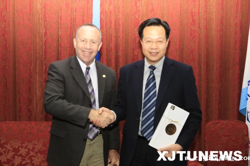 双方围绕现阶段中国发展面临的挑战和机遇,特别就高等教育及科学研究等领域交换意见。卢校长与代表团深入交流,他介绍了西安交大在中国高等教育以及西部发展中的重要作用,阐述了西安的悠久历史以及近年来政府对西安发展的重视。“紧跟北京、上海,西安已成为第三个国家重点建设的中心城市,这不仅是机遇,也是一次巨大的挑战,不同于北京、上海的高楼大厦,西安的特色在于友好安谧的环境。”他说,在西安经济高速发展的背景下,高等教育对于当地政府乃至整个国家来说都是至关重要的,西安交大作为“985”及“211”工程的高校,理应承担引领高等教育的责任。“以往西安的工业发展缓慢,毕业生多选择离开西安前往沿海,而近十年的招商引资及经济的告诉发展逐步改善了这一状况,西安正变得越来越有吸引力。”卢副校长还介绍了陕西省丰富的能源分布状况,并与代表团进行探讨。