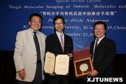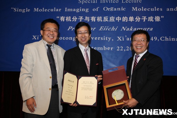 受聘仪式后,中村荣一教授为我校师生作了题为“Single Molecular Imaging of Organic Molecules and Reactions”(有机分子与有机反应中的单分子成像)的学术报告。随后,郑南宁校长也会见了中村荣一教授,并就我校与东京大学之间进一步强化多学科的学术交流及合作等方面广泛地交换了意见。