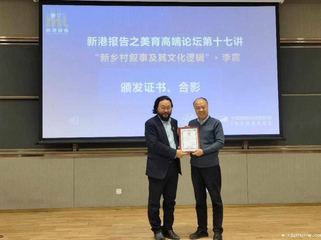 讲座最后,李黎明代表学校向李震颁发讲座荣誉证书并合影留念。