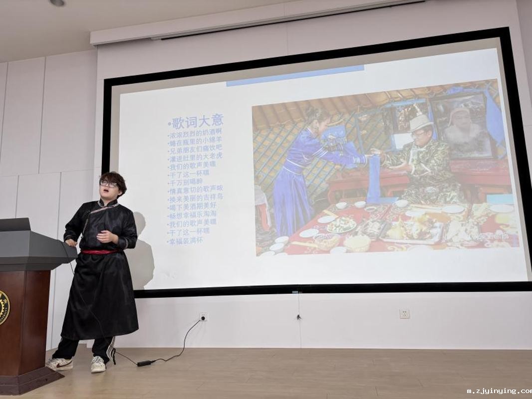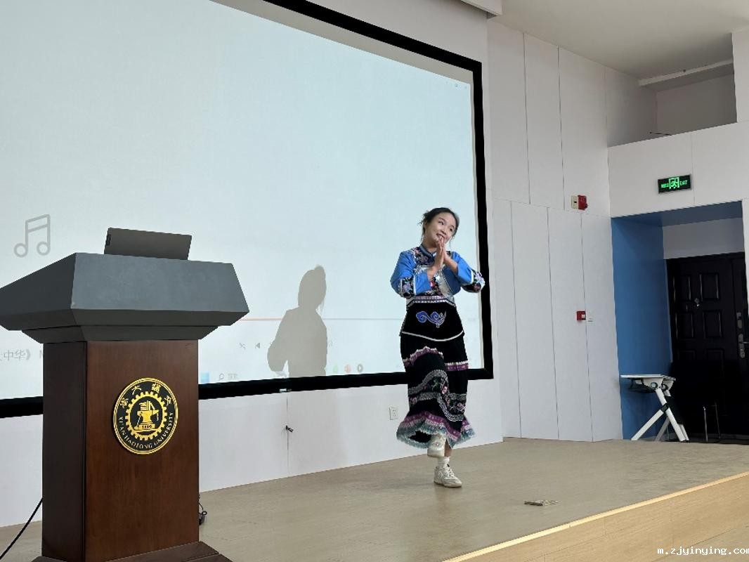 蒙古族学生昊毕图身着传统服饰,生动讲解了蒙古袍的款式、配饰及非遗文化,并现场演唱蒙古族祝酒歌,展现了浓郁的民族风情。土家族学生陈紫菡则带来了一段融合民族舞蹈与现代健身操的表演,赢得阵阵掌声,彰显了中华文化的多元魅力。
