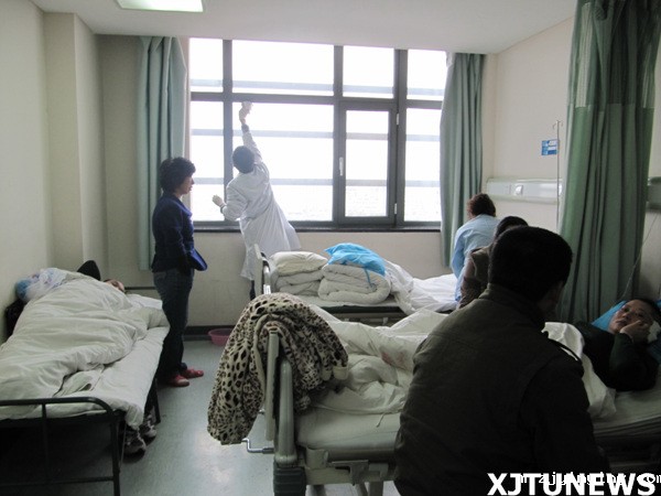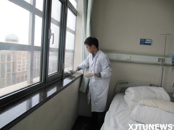 07(7)年级学生支部全体党员参加了本次活动。党员们在耳鼻喉科支部宣传委员吴彩芹总护士长和科室杜老师、杨老师的带领下分成三个小组,对耳鼻喉科门诊部的门诊室和两个病区的卫生进行了全面打扫,包括地面、窗台、门框、储物柜、病床、床头柜、电视机、饮水机……同学们不怕脏,不怕累,逐一认真打扫,他们有的拖地,有的擦桌子,有的擦玻璃,室外冷风嗖嗖,阴雨绵绵,天气寒冷,同学们却汗流满面,在病房干得热火朝天,经过近两个小时的奋战,同学们将病房打扫得干干净净,得到了医护人员和病人的连连称赞。