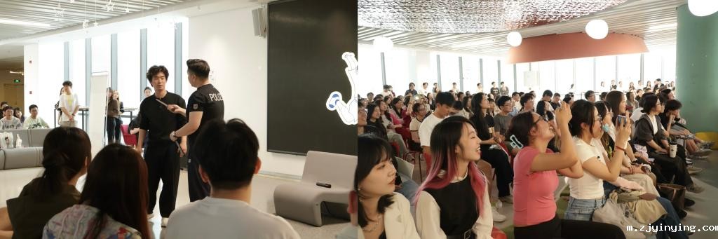 活动现场,演员们现场演出了“整个喜剧”系列中的《话里有画》片段,讲述一个被打入大牢的盗圣,被审问偷盗宝物经过时,有着只能边演边说的毛病,层出不穷的笑料一番接着一番。天马行空的剧情、丰富的笑点和灵活的现场互动,被现场同学们称赞“笑点满满”“脑洞大开”“欢乐不停”。