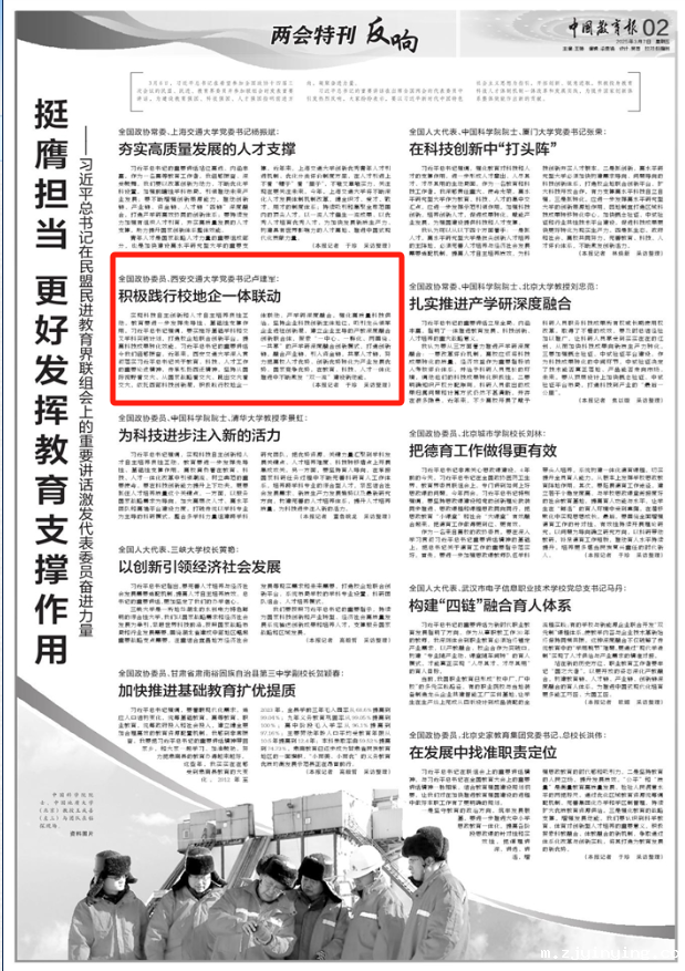 【中国教育报】挺膺担当 更好发挥教育支撑作用——习近平总书记在民盟民进教育界联组会上的重要讲话激发代表委员奋进力量