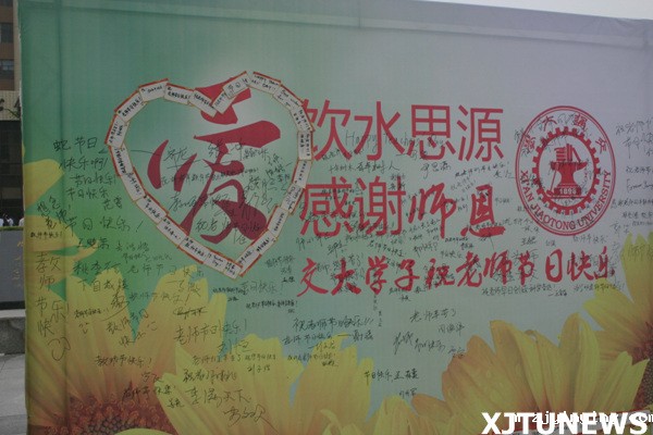 同学们祝福的方式丰富多样,贴心温暖:一朵小花、温馨的卡片、华丽花束、贴心的护膝、一封真情流露的祝福邮件,远隔千里的微博献礼……校学生会设立的教师节签名祝福墙,不到半天就写满了浓情祝福。尊师美德,芬芳四溢,蔚然成风。