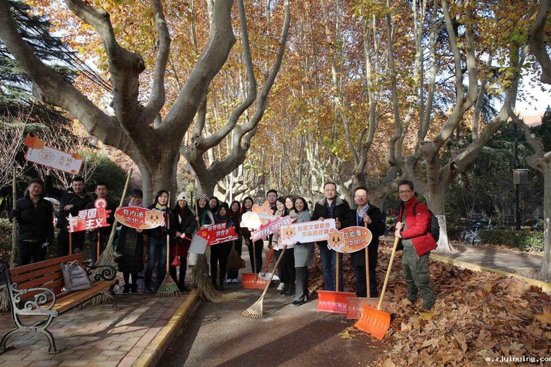 11月22日一大早,活动主办单位宣传部、后勤保障部、保卫处、工会、团委、教育基金会的党员同志们扛起扫帚、铁锹等清扫工具,集体清扫彭康路落叶,以志愿服务的方式向金色梧桐道别。