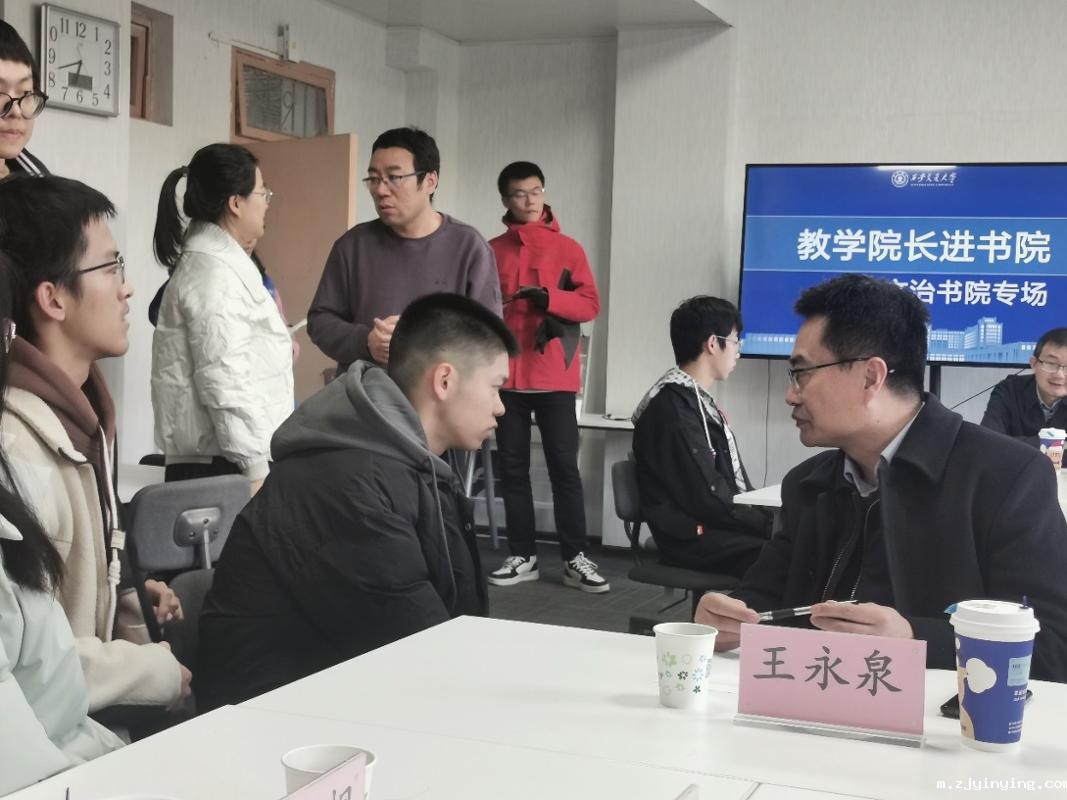 以“立国之要,以教育为命根,必学术日新,而国家乃有振兴之望,此必然之理”为旨归。学风是一所大学的灵魂,是大学永恒的魅力。书院努力打造“文以载道、治可安邦,书贵精勤、院荣诚信”的文治学风,推动教授进书院、专业进书院。青年人才进支部讲专业,班主任、本科生导师进班级讲学业,师生互动成为常态,亦师亦友渐成风气。以课内认知+课外拓展的形式,面向学生学业需求,提供多样性、灵活性、开放性的专业认知教育。