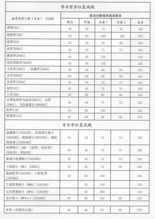相关说明(2011年招收攻读硕士学位研究生复试分数线以上表为准):